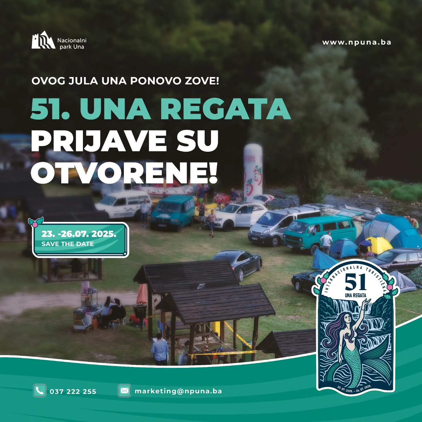 🌊 51. Internacionalna Turistička Una Regata 📅 23. - 26. juli 2025. Una ponovo zove sve ljubitelje prirode, raftinga i druženja na nezaboravnu avanturu! 🌞 Pridružite nam se na jednoj od najljepših rijeka Evrope i postanite dio tradicije koja spaja ljude i stvara uspomene za cijeli život. 🛶🌿 📌 Prijave su otvorene! ✅ Način učešća: 🔸Opcija 1 Putem rafting agencije: Ako nemate vlastiti rafting čamac, licenciranog skipera i kompletnu sigurnosnu opremu (kaciga, prsluk za spašavanje, veslo), potrebno je da rezervišete svoje mjesto preko ovlaštene rafting agencije. Nakon izvršene rezervacije, obavezno je i popuniti prijavni obrazac za registraciju učesnika. 🔸Opcija 2 Vlastitim čamcem: Ako posjedujete vlastiti rafting čamac i svu potrebnu sigurnosnu opremu, možete učestvovati samostalno, uz obaveznu registraciju putem prijavnog obrasca. ✅ Kako se prijaviti? 👉 Online prijava: Popunite obrazac klikom ovdje: https://tally.so/r/wLqErj 👉 Lična prijava: Info centar Nacionalnog parka Una, Bosanska 1, Bihać 📍 Lokacija na karti: https://maps.app.goo.gl/X9L3jHfEJQE5Zy3t7 ℹ Napomena: Možete izvršiti prijavu online, preko ovlaštene rafting agencije ili lično u Info centru Nacionalnog parka Una. 💳 Način uplate kotizacije: Kotizaciju po učesniku možete izvršiti: 🔹 Preko uplatnice na račun Nacionalnog parka Una 🔹 Uplatiti direktno u prostorima Info centra Nacionalnog parka Una Kotizacija po učesniku iznosi: 50,00 KM ❗Važno: Prijave bez rezervacije u rafting agenciji ili bez registracije u Info centru Nacionalnog parka Una, a koje također ne ispunjavaju uslove za samostalno učešće (vlastito plovilo i obavezna sigurnosna oprema), smatraće se nevažećim. 🎯 Vidimo se na Uni, rijeci koja spaja!